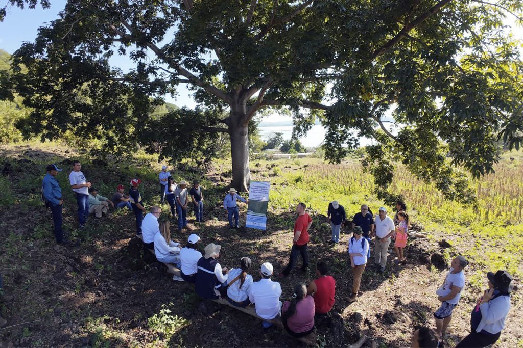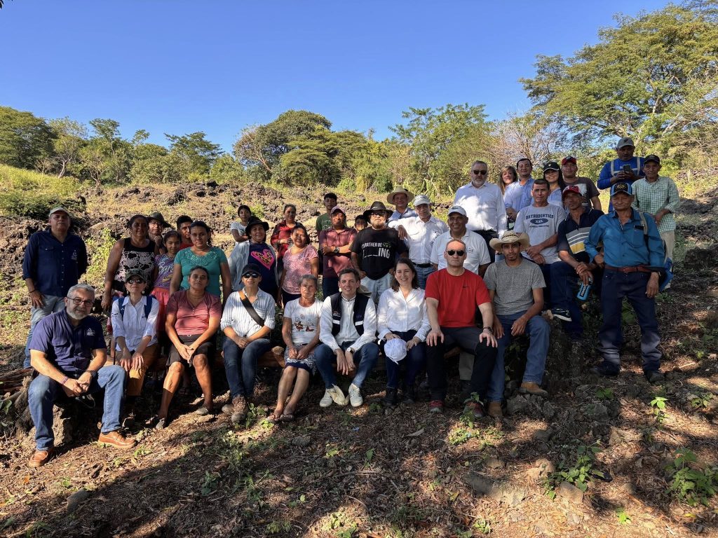 Posteriormente, la delegación se trasladó a la Comunidad Azacualpa, Cantón Las Piedras, Distrito Metapán, para un intercambio con familias participantes del Convenio de Medidas Agroambientales. Hombres y mujeres compartieron sus experiencias en la implementación de prácticas sostenibles, el manejo del suelo y los beneficios directos que este proyecto ha generado para su economía, sus cultivos y la protección del territorio.