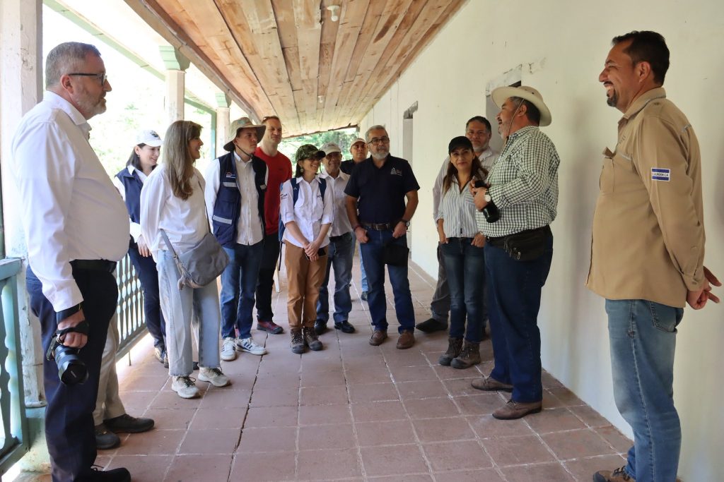 La visita inició en el Casco de la Hacienda-Parque Nacional Montecristo, en donde Representantes del Ministerio de Medio Ambiente de El Salvador presentaron la importancia estratégica de esta área natural para la región y las mejoras proyectadas en el Centro de Visitantes, obras clave que fortalecerán la conservación y el turismo ecológico.